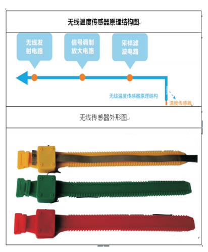 - 无线温度传感器用于测量高压带电物体表面或接点处的温度,如高压开关柜内的裸露触电、母排连接处、户外刀闸及变压器等的运行温度。无线温度传感器是由温度传感器、信号调理放大、逻辑控制电路、无线调制接口等组成。